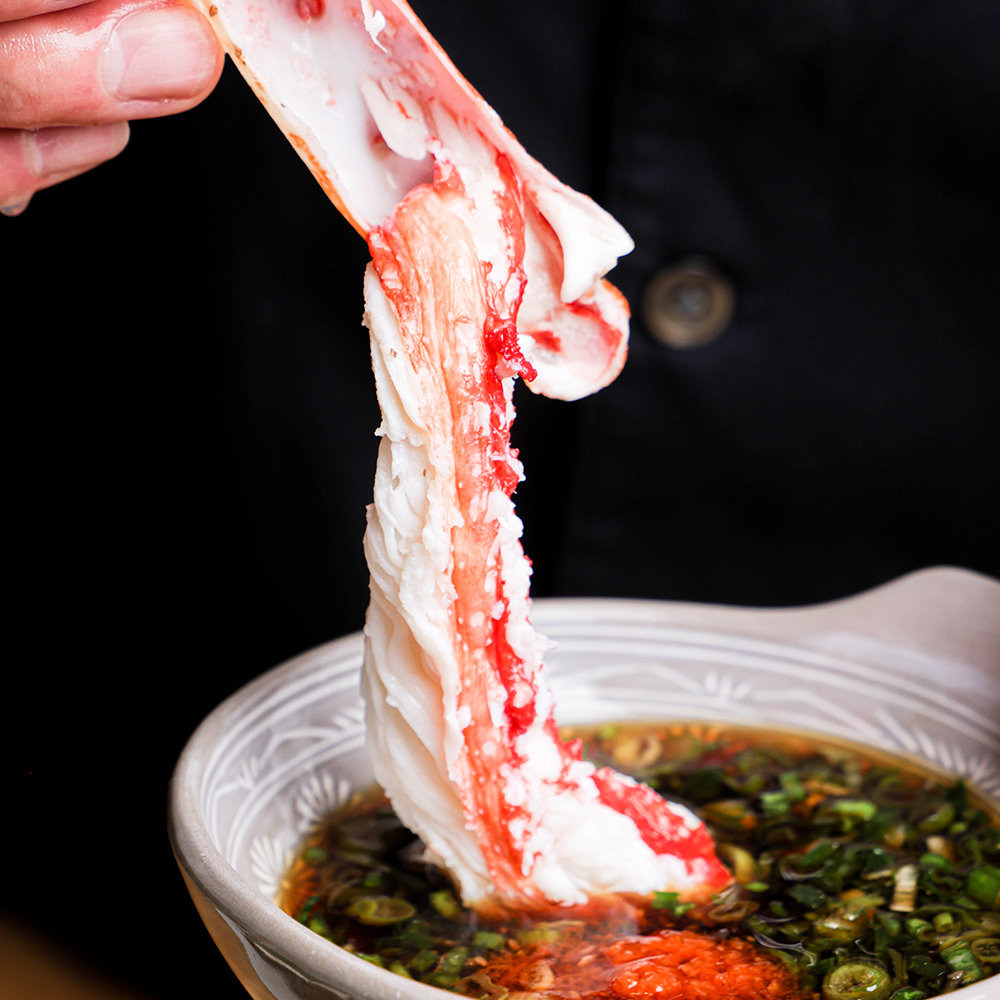 We serve A5 Miyazaki Wagyu, which has a bold meaty texture while melting inside the mouth.Our King Crabs are delivered fresh from the market, filled with juicy crab meat.
